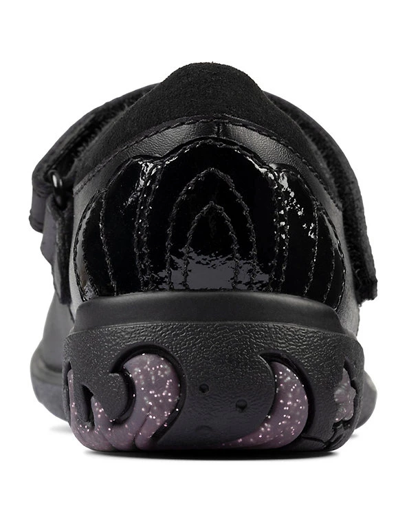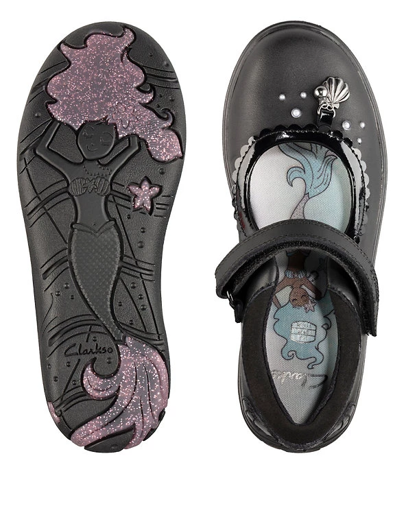 These leather Mary Jane shoes from Clarks have a fun, ocean-themed twist. They feature a classic round-toe style, with an easy riptape bar that kids can fasten themselves. The durable design has a thick, flexible sole and padding to keep young feet comfortable. Kids will love the mermaid detailing on the inner and outer sole, and eye-catching embellishments like the charm and patent shell at the heel.