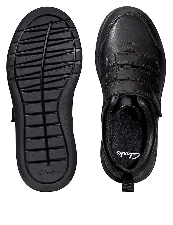 These leather school shoes from Clarks are perfect for active kids. They’re made with durable soles, plus a triple riptape fastening for a secure fit. The padded collar keeps growing feet comfortable, along with a protective finish on the heel and toe. They have a lightweight rubber sole with flex grooves for easy movement.