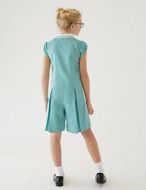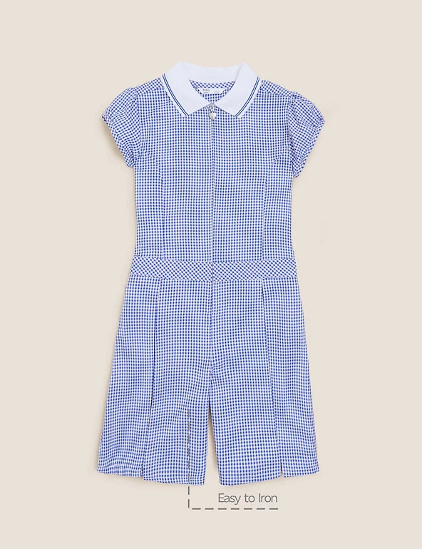 This gingham playsuit is both stylish and practical and offers more freedom to run, jump and climb in full comfort. Two front pleats on shorts. Our easy-to-iron finish ensures it just needs a quick press and it’s ready to go.