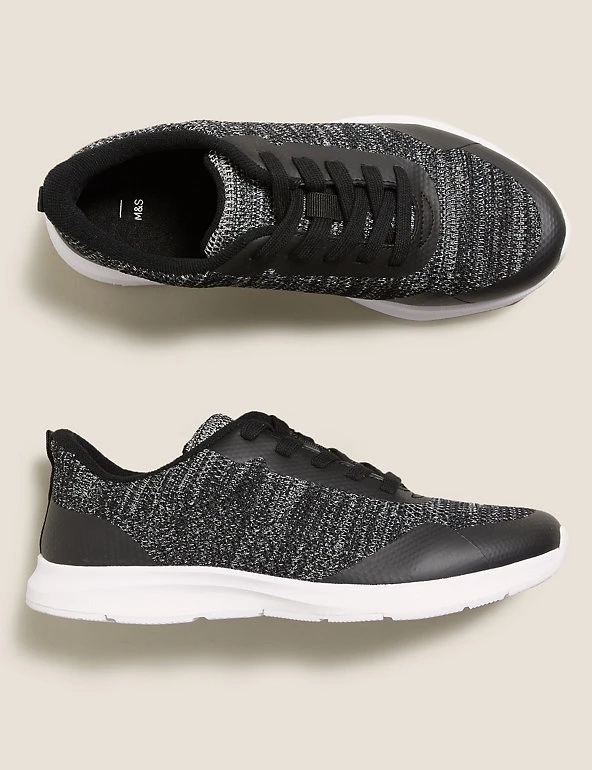 These super-lightweight trainers have a flexible design that’ll keep kids’ feet comfy. Standard fit, with a soft collar and lace-up fastenings. Thick sole with plenty of grip. Made with a textured knitted finish, and a recycled upper, lining and sock. Our bacteria-combatting Freshfeet™ technology helps keep feet fresh. These trainers are machine-washable for easy care.