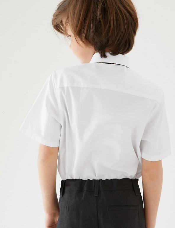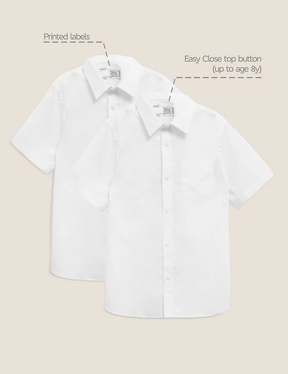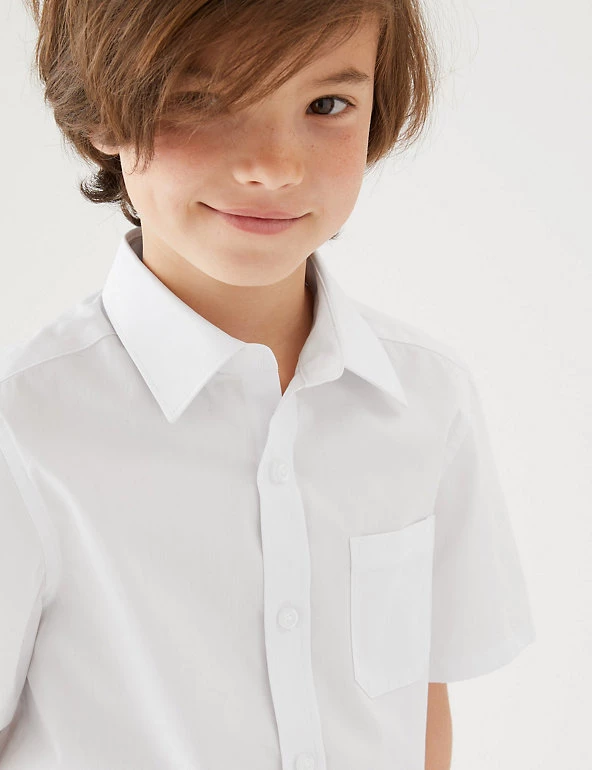 These short sleeve shirts are made from pure cotton and are part of our Skinkind™ range, so expect flat seams, super soft fabric and printed care instructions that do away with bothersome labels. For sizes below 8 years, the top button has an Easy Close mechanism for straight forward dressing. We only ever use responsibly sourced cotton for our clothes.