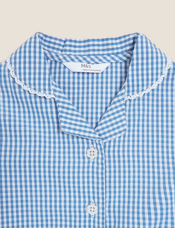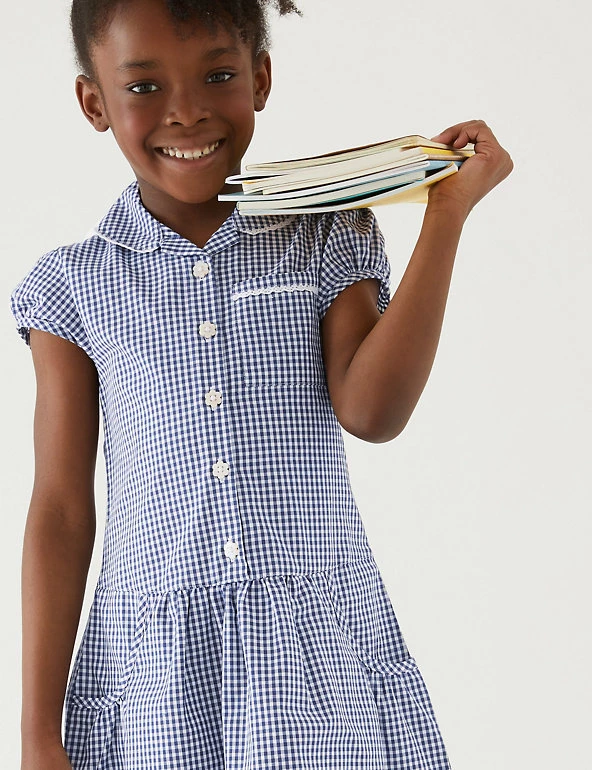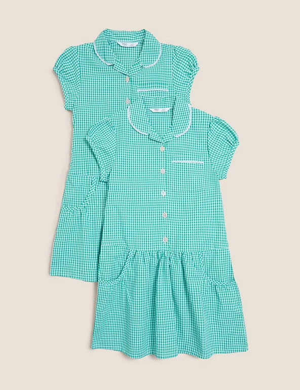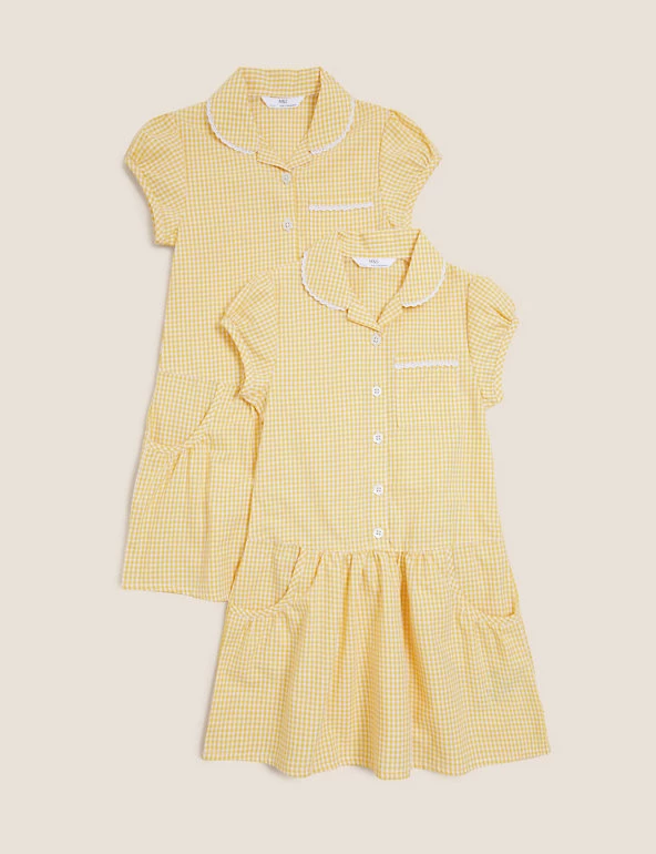 For style and comfort, our two pack gingham dresses are the perfect option. They are made from a cotton-rich fabric for added comfort throughout the day. Smart button-up front and flared skirt with two handy pockets. Easy-to-iron finish means it just needs a quick press and it’s ready to go. We only ever use responsibly sourced cotton for our clothes.