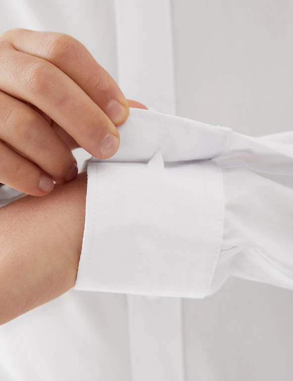 These boys’ long sleeve shirts come in a longer length for taller children and feature our easy to iron technology, so they only need a quick press for a crisp finish. Expandable stretch cuffs (up to 8 years) support independent dressing by reducing fiddly fastenings. Handy pack of three. We are transitioning the polyester in this garment to recycled polyester. While we transition, customers may receive items made with either sustainable sourced cotton and recycled polyester or just sustainable sourced cotton and polyester.