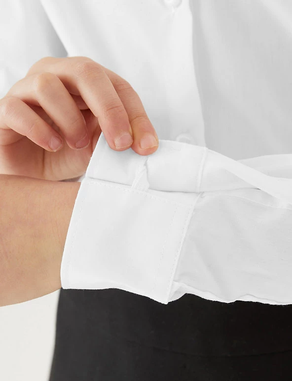 Our three pack of regular fit school shirts are the ultimate school time staple. Each shirt is designed with time saving Easy to Iron technology, a quick press and they are ready to go. For the younger sizes (up to 8 years), they come with our practical Expandicuff™ elastic in the cuff that makes it easier for children to dress and undress. We are transitioning the polyester in this garment to recycled polyester. While we transition, customers may receive items made with either sustainable sourced cotton and recycled polyester or just sustainable sourced cotton and polyester.