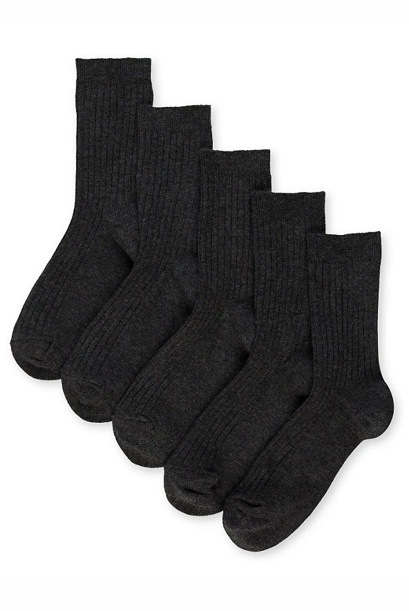 Ideal for all year-round wear, these kids’ school socks are incredibly smart and stylish. Made from a delicate cotton rich blend for breathable comfort, the added stretch gives them extra room for movement. This kids’ sock multipack contains five pairs, all of which have our Freshfeet⢠technology to keep feet dry and fresh even when theyâre running around the playground all day.We only ever use responsibly sourced cotton for our clothes.