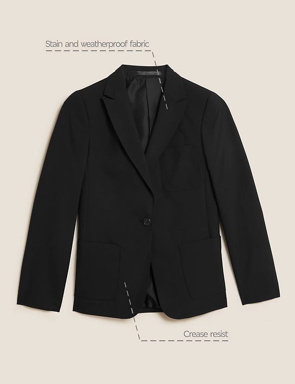 Stylish school blazer with a flattering slim fit that sits closer to the body. This Senior blazer comes with Crease Resistant technology to keep it smart all day long. Stain & Weatherproof finish repels water and stain and our special ink resistant chest pocket means leaky pens no longer pose a risk to shirts.