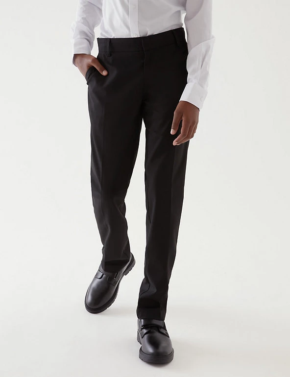 Flat waistband with zip and hook and bar fastening for-10-11+, Added stretch, Stain & weatherproof: a durable finish that repels water and stains , Our crease resistant technology stops clothes from creasing during wear, and ensures creases fall out more easily