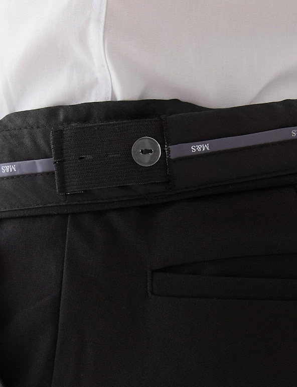 Slim fit, Trouser Style: Flat front, Elastic back waistband with zip and hook and bar fastening for- 6-10 years, Flat waistband with zip and hook and bar fastening for-10-11+, Stain & weatherproof: a durable finish that repels water and stains , Our crease resistant technology stops clothes from creasing during wear, and ensures creases fall out more easily