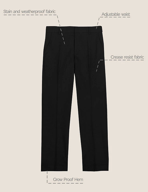 Flat waistband with zip and hook and bar fastening for-10-11+, Stain & weatherproof: a durable finish that repels water and stains, Our crease resistant technology stops clothes from creasing during wear, and ensures creases fall out more easily