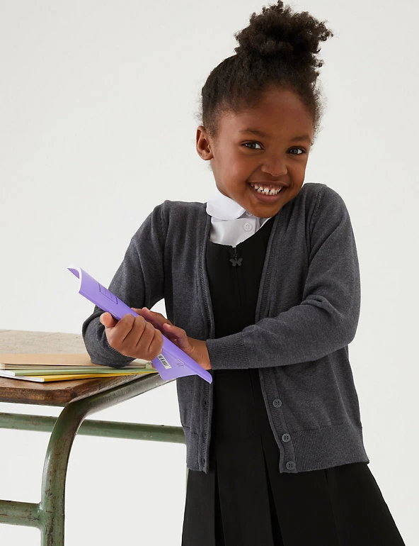Have a smart layer at the ready every day of the school week with our handy two pack of children’s cardigans. Made using pure cotton as well as our StayNEW™ technology which reduces bobbling and colour loss, keeping clothes looking newer and brighter for longer. We are transitioning this garment to organic cotton. While we transition, customers may receive items made with either sustainably sourced cotton or sustainably sourced organic cotton. We only ever use responsibly sourced cotton for our clothes.