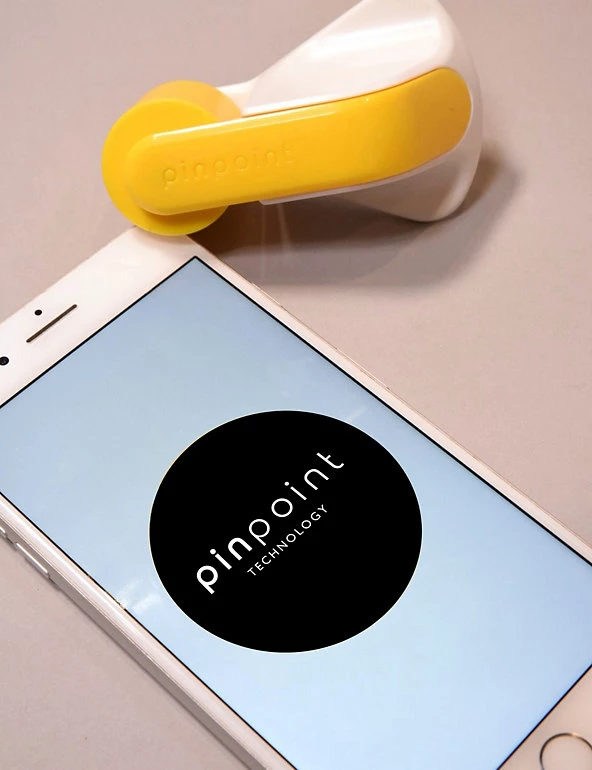 The Pinpoint Measuring Tool takes the guesswork out of shopping online for children’s shoes. The measuring tool features a rotating stylus for easy use and works alongside the M&S Pinpoint app to create an accurate measurement of your childs feet, so you can order the correct size with confidence. With the guidance of the app place their foot on a piece of plain A4 paper and run the tool around it. Repeat with the other foot, scan the outlines using the app on your smartphone. Pinpoint works in UK sizes only. Size range is from UK 4 small to UK 9 large. This tool is not a toy, and is non-returnable. App is compatible on iOs and Android.