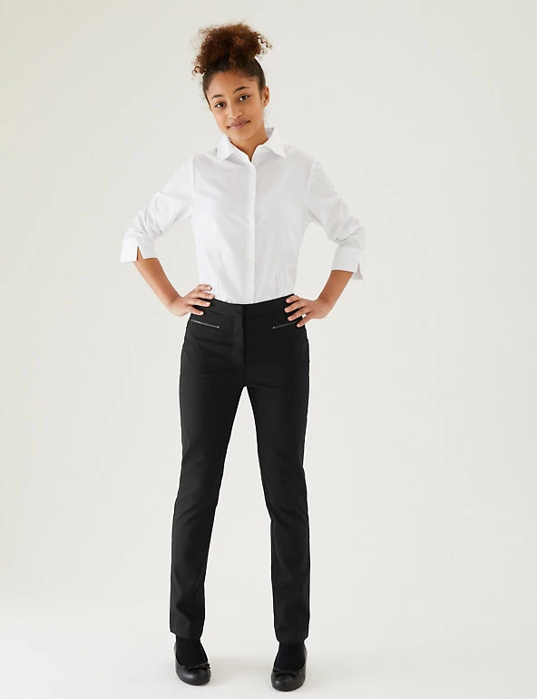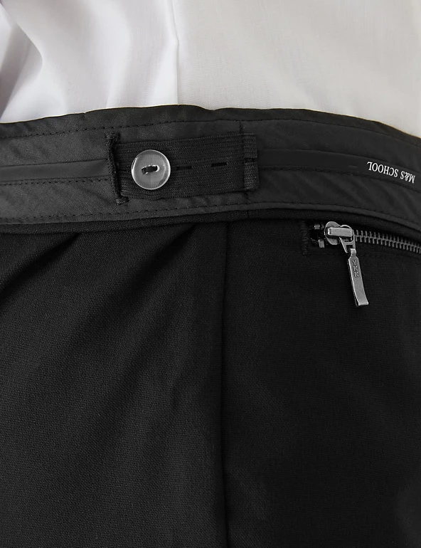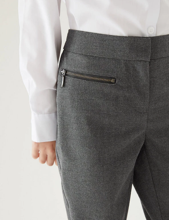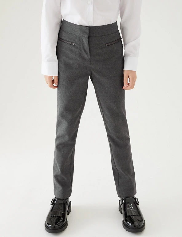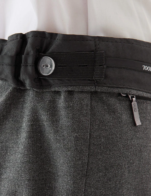 These modern school trousers are made with special crease-resistant fabric for hassle-free laundering. This trouser offers a super-skinny leg and added stretch for a flexible feel. Comfy adjustable waist and adjustable hems mean they will last for longer. Zip fastening. Complete with our special water-repellent Stormwear™ finish. Made with recycled polyester and sustainable viscose.