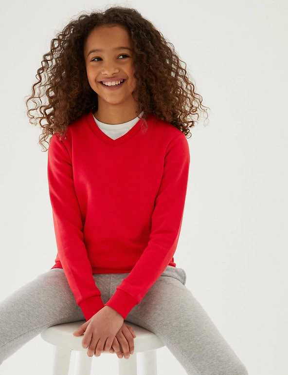 M&S Collection Jumpers Cotton Unisex V-Neck Sweatshirt (2-16 Yrs)