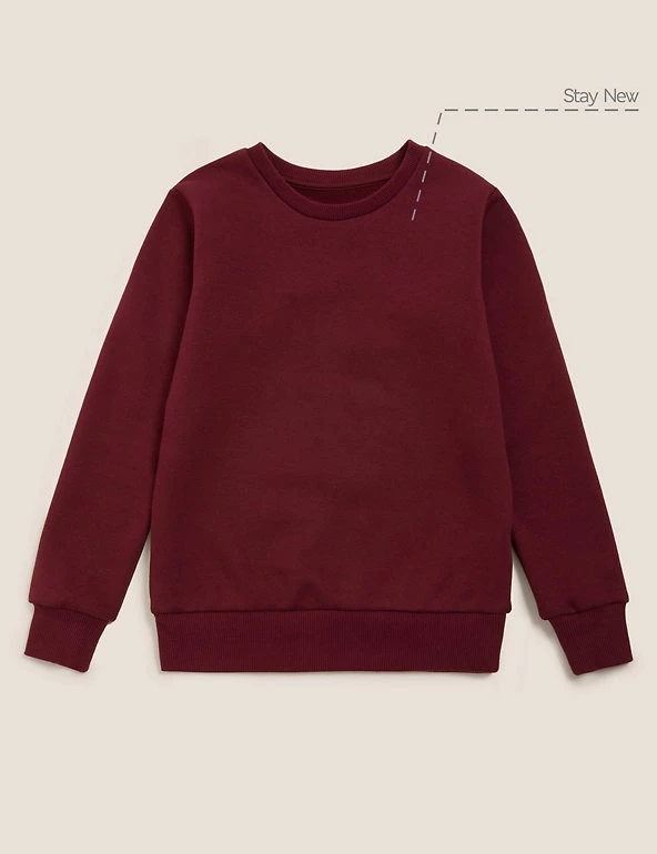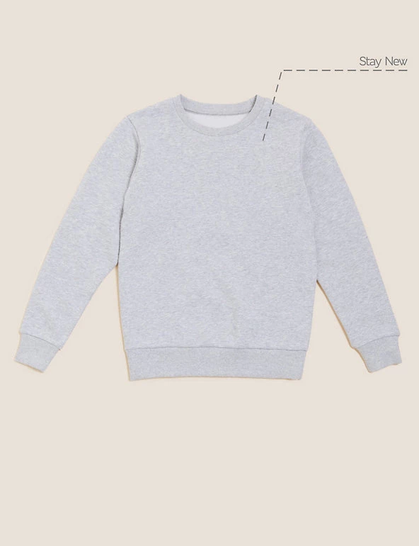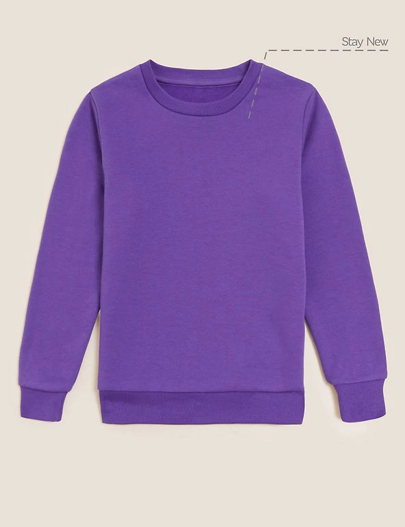 This smart school sweatshirt is made from cotton-rich fabric for a soft and breathable feel. Regular fit with a crew neck. Our StayNew™ technology reduces bobbling and colour loss, keeping their uniform looking newer and brighter for longer. We only ever use responsibly sourced cotton for our clothes.