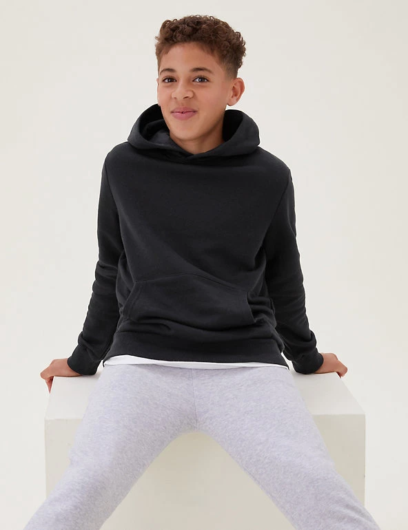 Snuggle up in this cosy cotton-rich hooded on laid-back days. Classic regular fit with an easy pull-on design. Handy kangaroo pocket and a drawstring hood. Part of our 3 for 2 bundle offer.