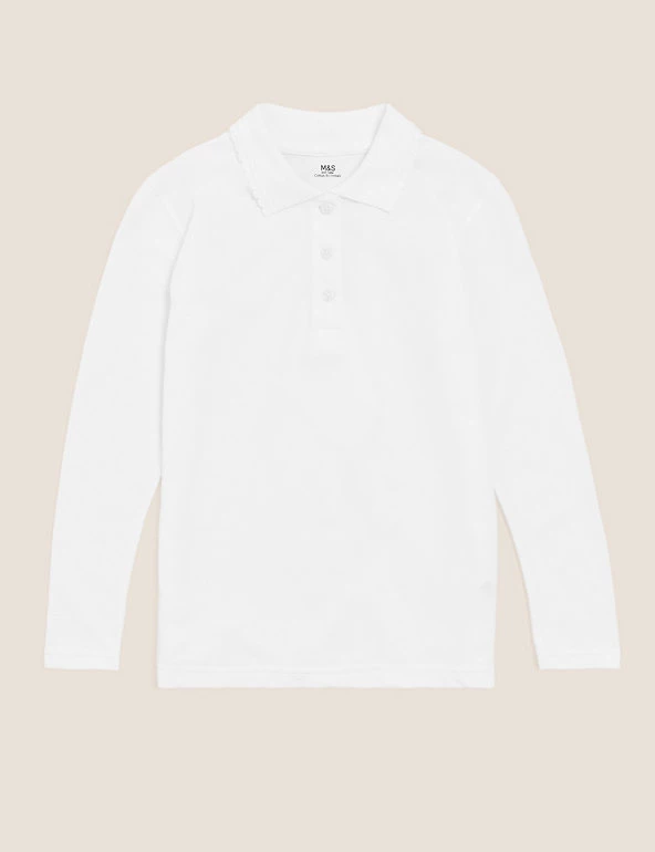Kit kids out for school with this pure cotton, long-sleeved polo shirt. Regular fit for comfort. Crinkle-cut collar adds a cute touch. Our StayNew™ technology reduces bobbling, keeping the shirt looking newer and brighter for longer. We only ever use responsibly sourced cotton for our clothes.