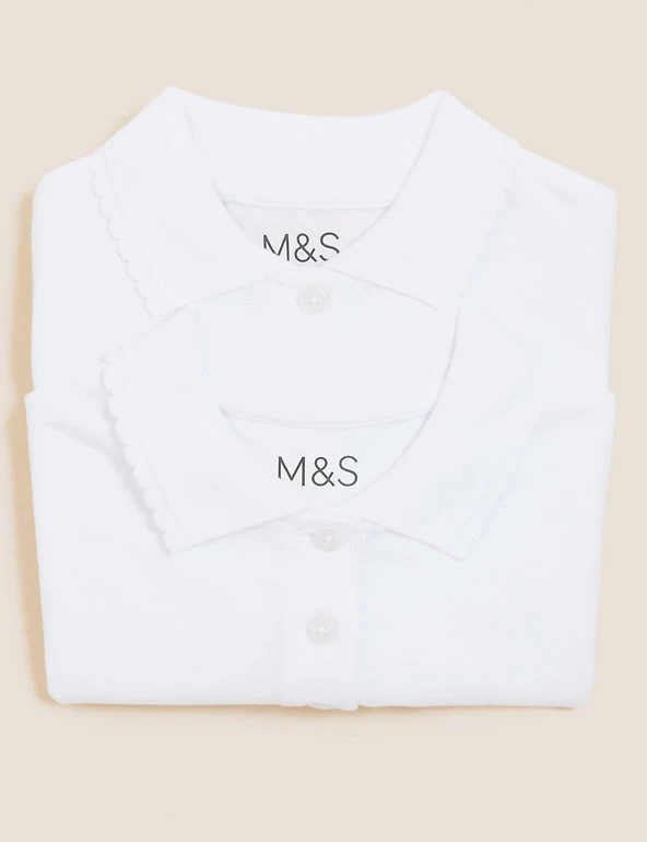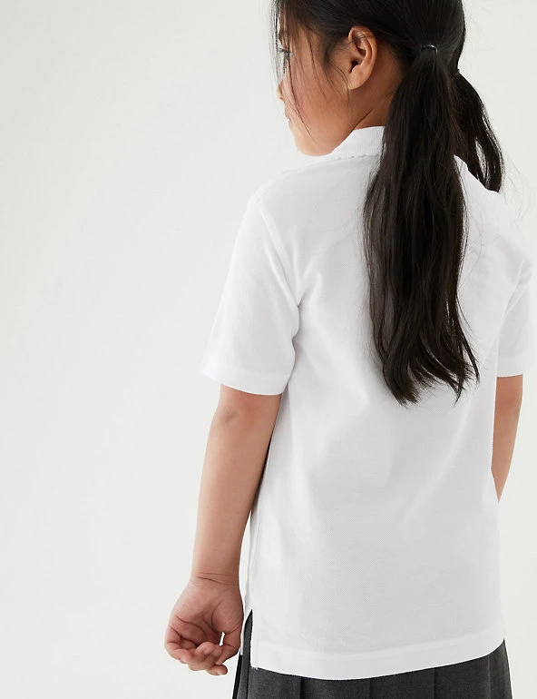 High-quality and durable, these pure cotton multipack regular fit school shirts are stain resistant ensuring protection from spills and splashes . They also come with StayNEW™ technology that reduces bobbling and colour loss, keeping them looking newer and brighter for longer. These polo shirts have a scallop collar for a stylish look. We are transitioning this garment to organic cotton. While we transition, customers may receive items made with either sustainably sourced cotton or sustainably sourced organic cotton. We only ever use responsibly sourced cotton for our clothes.