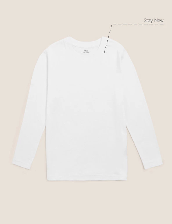Kit kids out for school with this comfortable, long sleeve t-shirt. Regular fit for all-day comfort. Perfect for wearing underneath school uniforms to keep the chill at bay. Made from pure, soft and breathable cotton. We only ever use responsibly sourced cotton for our clothes. StayNew™ technology reduces bobbling and colour loss, keeping clothes looking newer and brighter for longer.