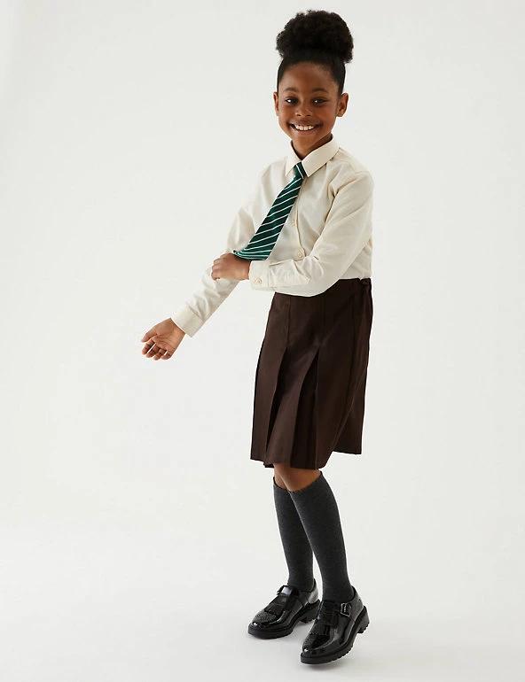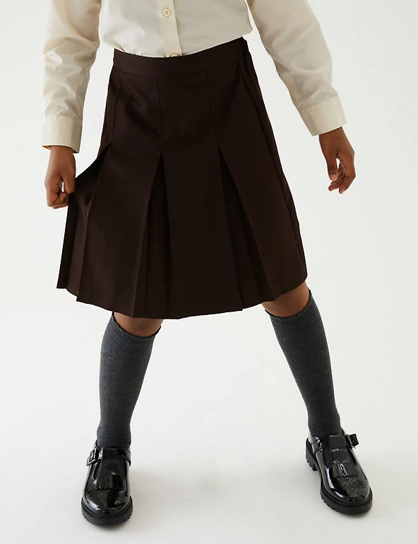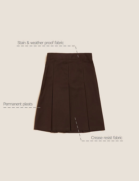 Stand out from the crowd in style and convenience with this classic school skirt. Stain and Weatherproof finish repels water and stains and Crease Resistant material helps creases fall out easily. With Permanent Pleat technology to make sure pleats stay put wash after wash and an adjustable waist for perfect fit. Made with recycled polyester and sustainable viscose.