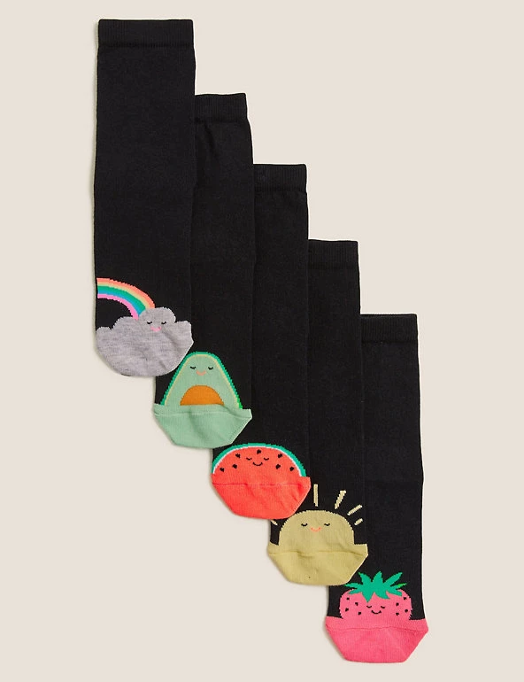 M&S Collection Socks & Tights 5pk Cotton Rich Toe Design Socks