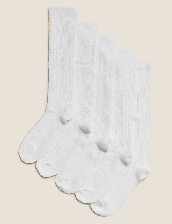 With a pretty pelerine style to elevate their everyday look, this five pack of children’s socks is a great way to fill up their drawers with everyday essentials. These knee high socks are made from a soft and cosy cotton mix and have been finished with our Freshfeet™ technology to combat bad odours.We only ever use responsibly sourced cotton for our clothes.